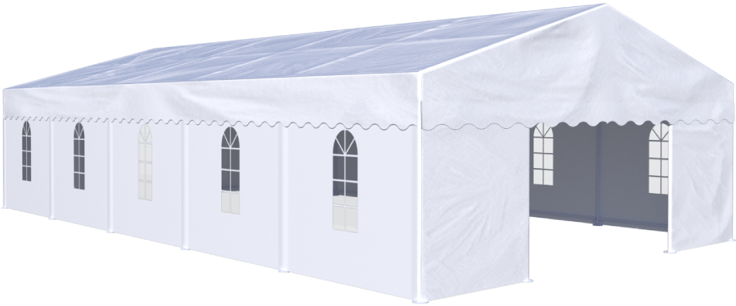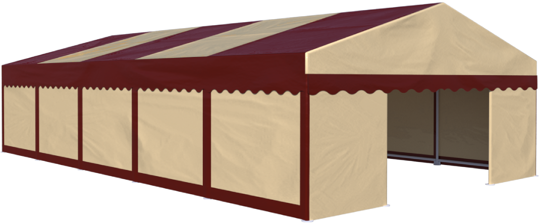 La tente de chapiteau professionnelle a des dimensions de 3,5×12,5x7m. Il est élégant et festif. Convient pour les festivals, les expositions, la communication, les mariages et diverses occasions. Avec un poids total de 610kg. Fait de bâche en PVC de haute qualité de 700 grammes. Ce tissu se caractérise par sa bonne résistance à la chaleur de 30 à 70+ degrés Celsius et au rayonnement ultraviolet. La tente est étanche à %100. Il est soutenu par des bases stables et épaisses, qui résistent aux vents de 80 à 100 km / h..